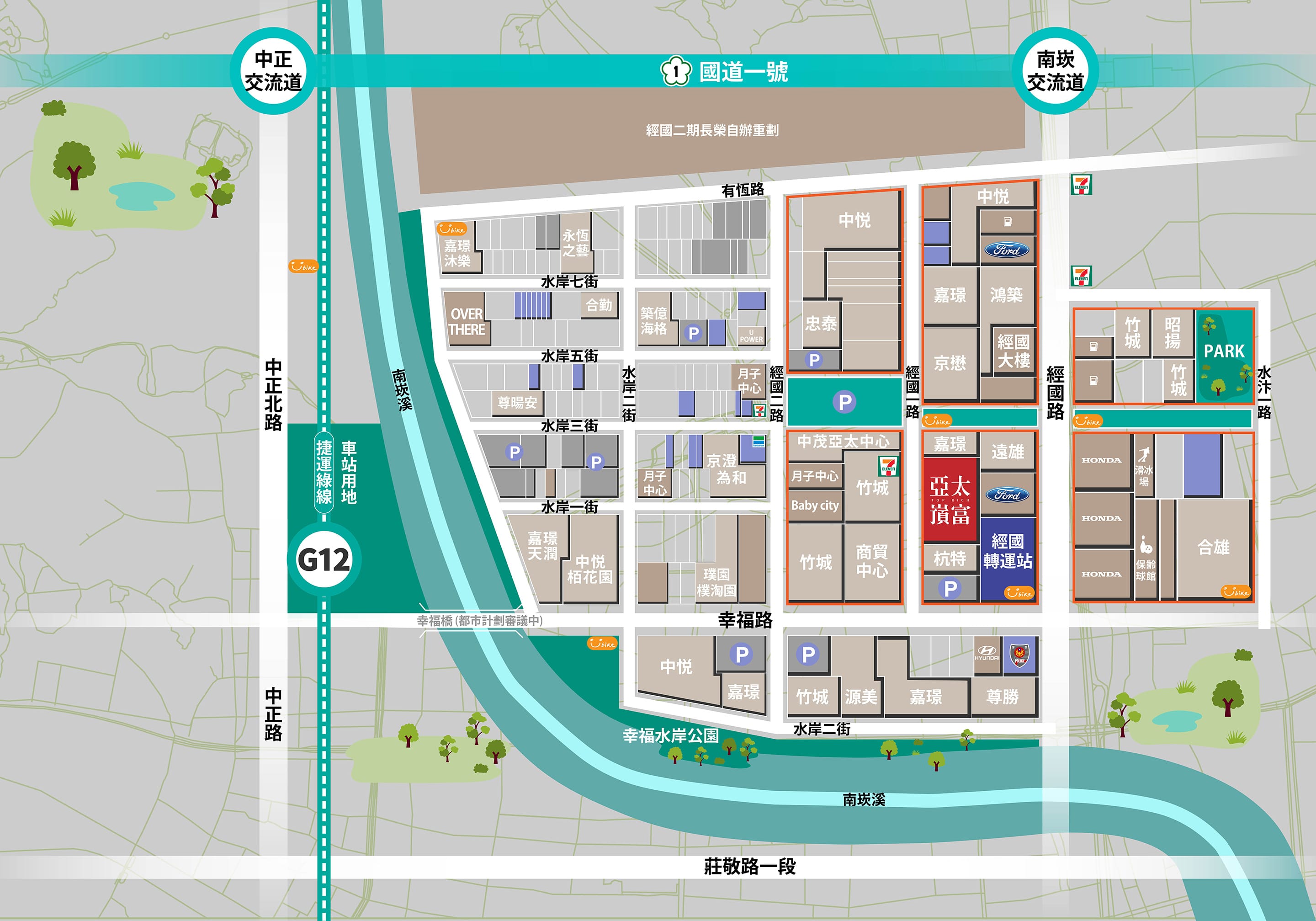 經國轉運站旁,約1公里接國道一號,捷運G12站串連桃園大車站、高鐵與機捷,完善廠/辦分離,市心黃金地段,效率形象兼顧